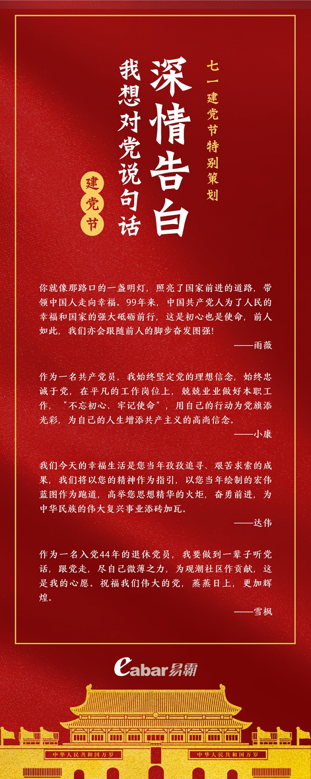 易霸的真情告白——致七一建党节